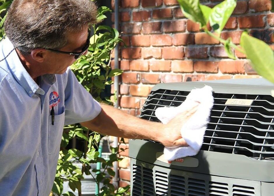 Heating-and-Air-Tech-Wiping-Down-HVAC-System